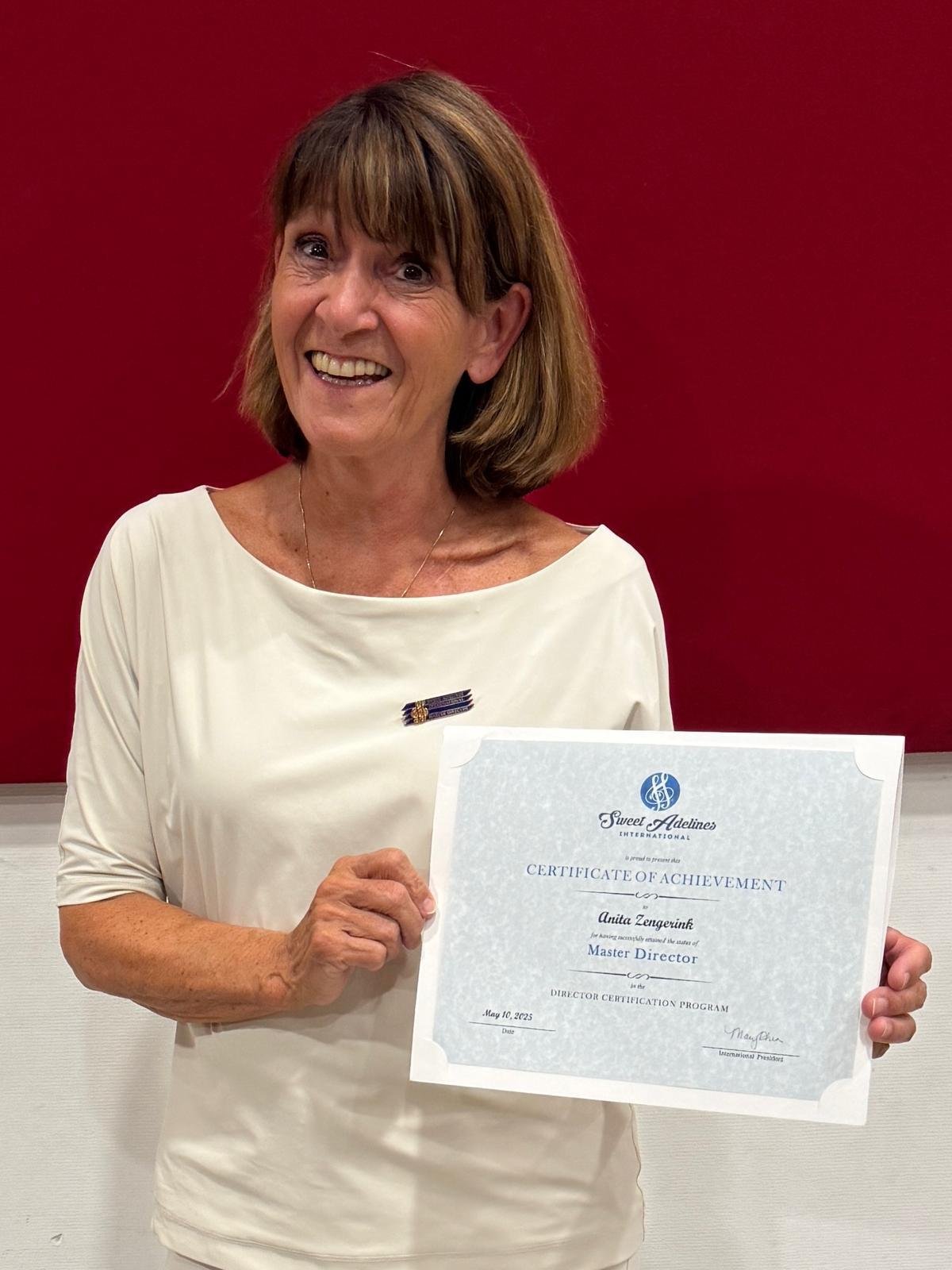 Tijdens repetities leert Anita het koor de technieken zo toe te passen, dat het unieke barbershop geluid (met vier stempartijen een vijfde boventoon creëren) in ieder nummer doorklinkt.